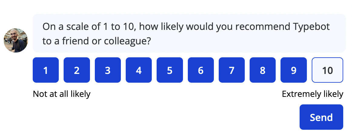You could for example configure it so that it collects the Net promoter score:- Flow