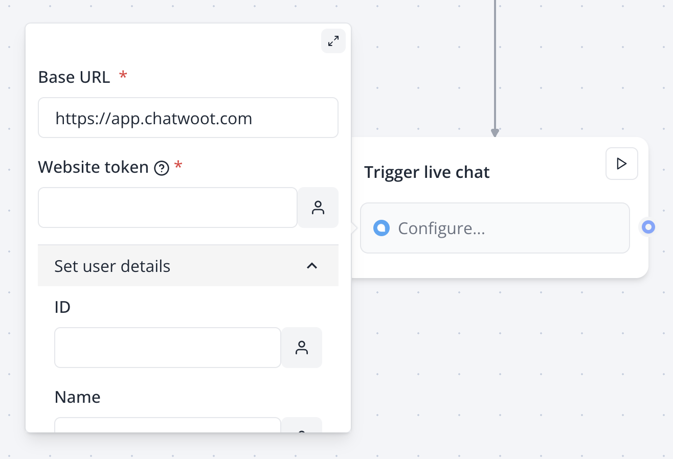 Insert a Chatwoot block where you want to trigger the widget: