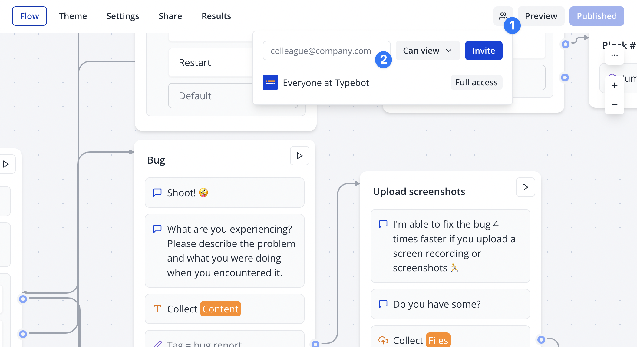 - Edit the bot: they will be able to view AND edit the flow and the results